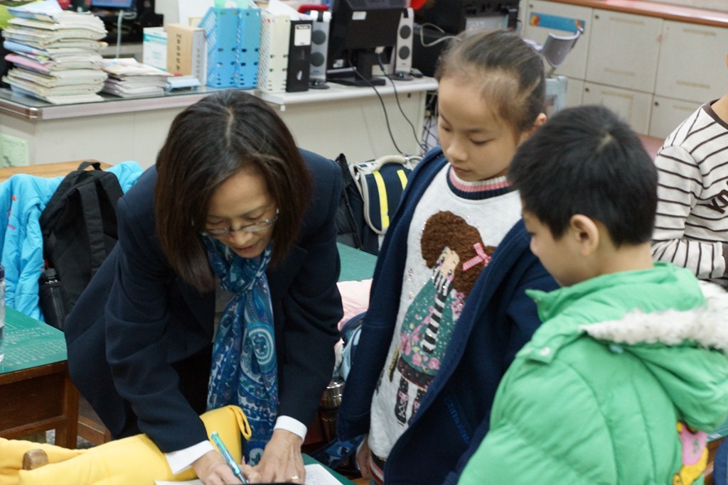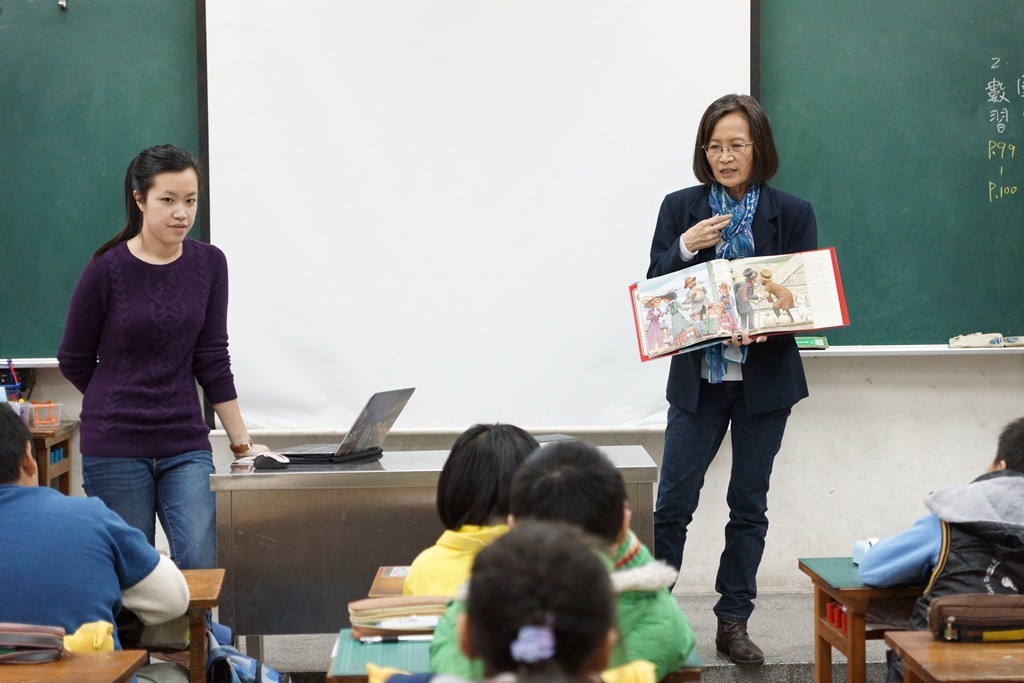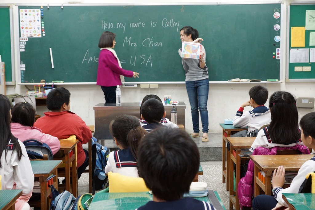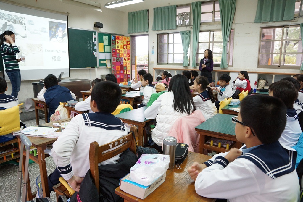 因班導的聯絡與安排,遠在美國的方阿姨與Cathy姊姊,來到宜蘭國小五忠班。