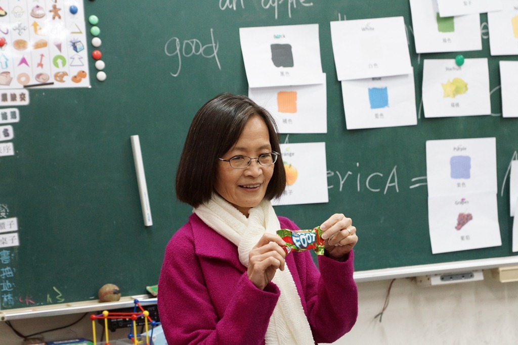 第一節課他們教我們一些基本的單字,有關於水果和顏色,像是蘋果、芒果、紅色、黃色等,都是我聽過的單字。最後,阿姨有發糖果給我們吃,那糖果的名稱是「 一尺糖」,一尺糖酸酸甜甜的,很好吃,這糖果的形狀跟其他的糖果很不一樣,別的糖果一顆顆的,但是這糖果是很長一條的,很不一樣。
