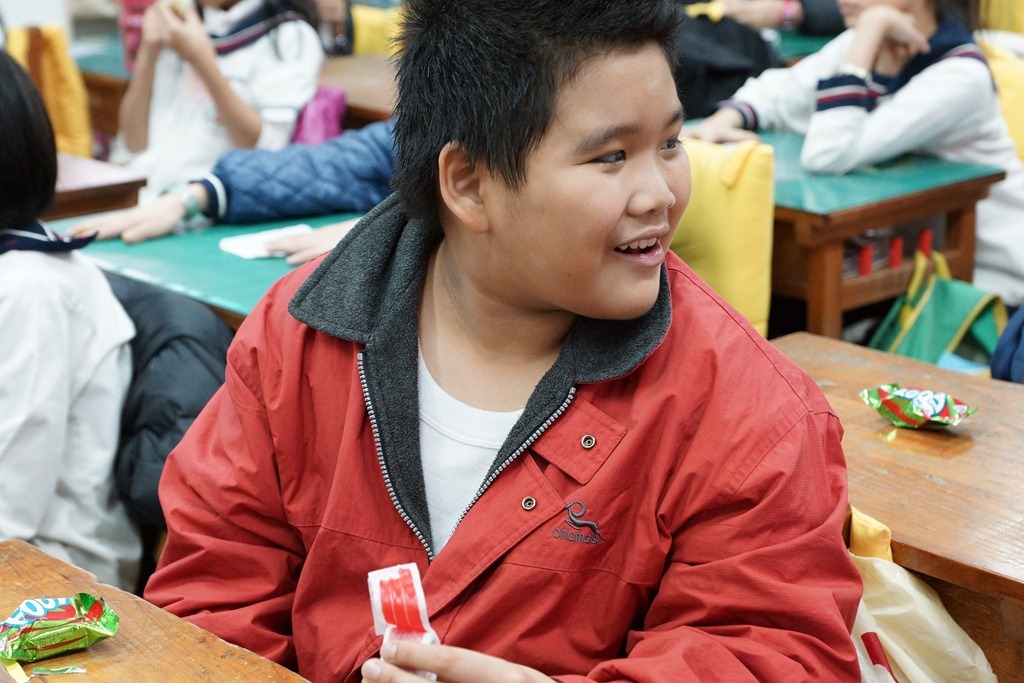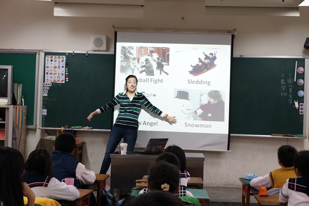 志工姊姊和志工阿姨來到我們班,讓我收穫很多,我從他們身上了解了他們的生活,還有一些美國的風景、節日。姊姊、阿姨有發糖果和餅乾,雖然不是什麼好東西,但是對我來說已經心滿意足了。希望以後有機會,他們還可以到台灣找我們。