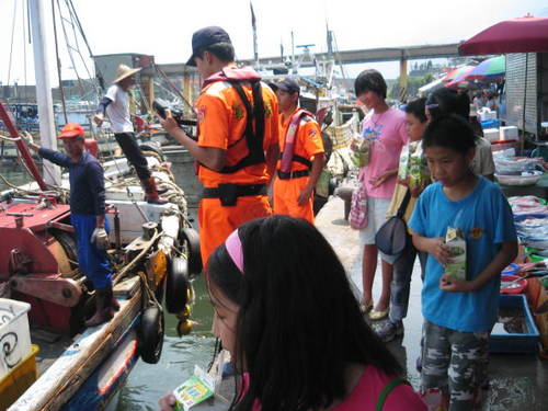 後來,我們又去大溪漁港,在全家補充了飲料後,便在漁港看到很多熟人…,看到漁貨與拍賣的情形後,我們又走了大老遠的路回到大溪火車站,搭車返校!