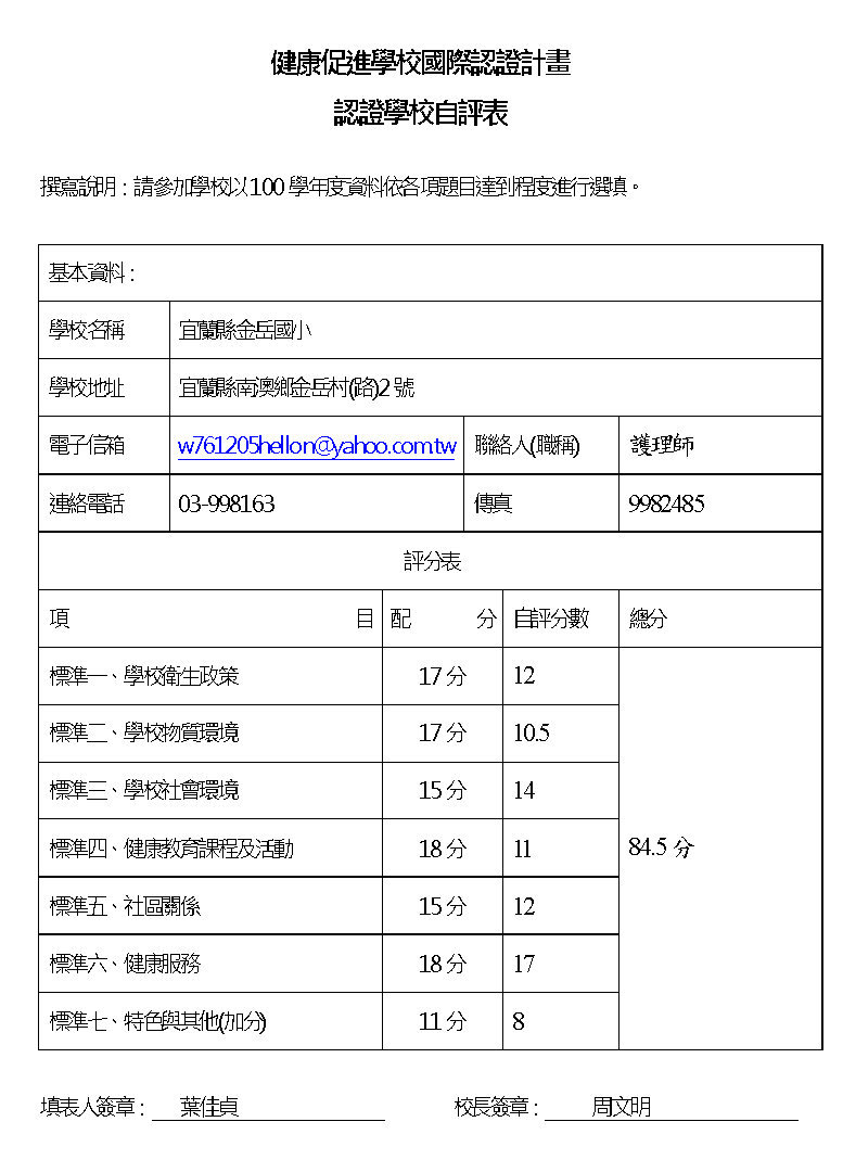 四、1-2 100學年度健康教育課程教學計劃、教學過程記錄成果照