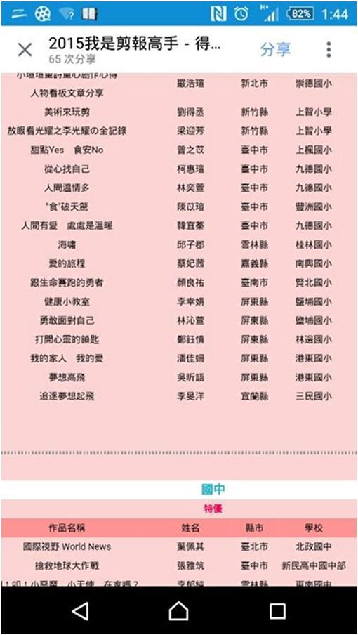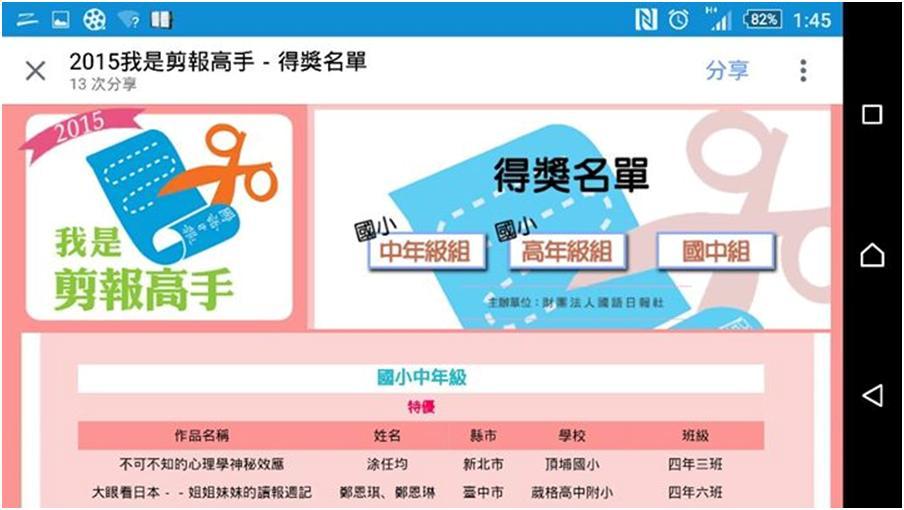 2015年國語日報剪報高手,旻洋努力終於有成果~