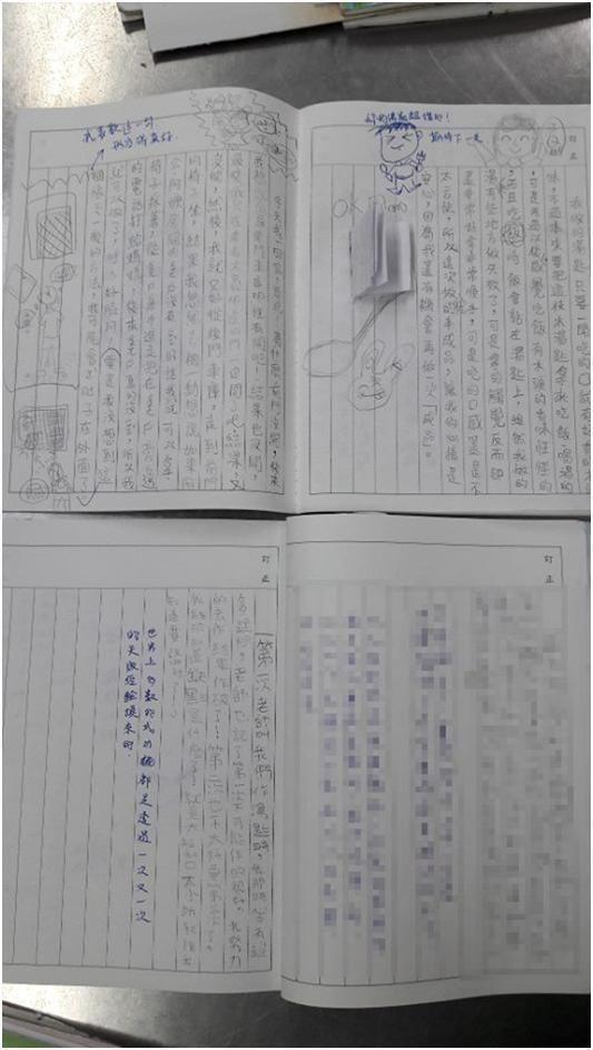 附上比較圖,圖中下面那一份在班上不算寫少的了,