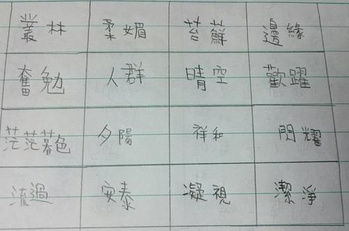 語詞賓果成果(這是我們班的造句本,其實他們幾乎一課就寫一篇文章),完成後還可以玩語詞賓果,就是一直用玩遊戲來包裝,孩子們都興致高昂)真的!!!