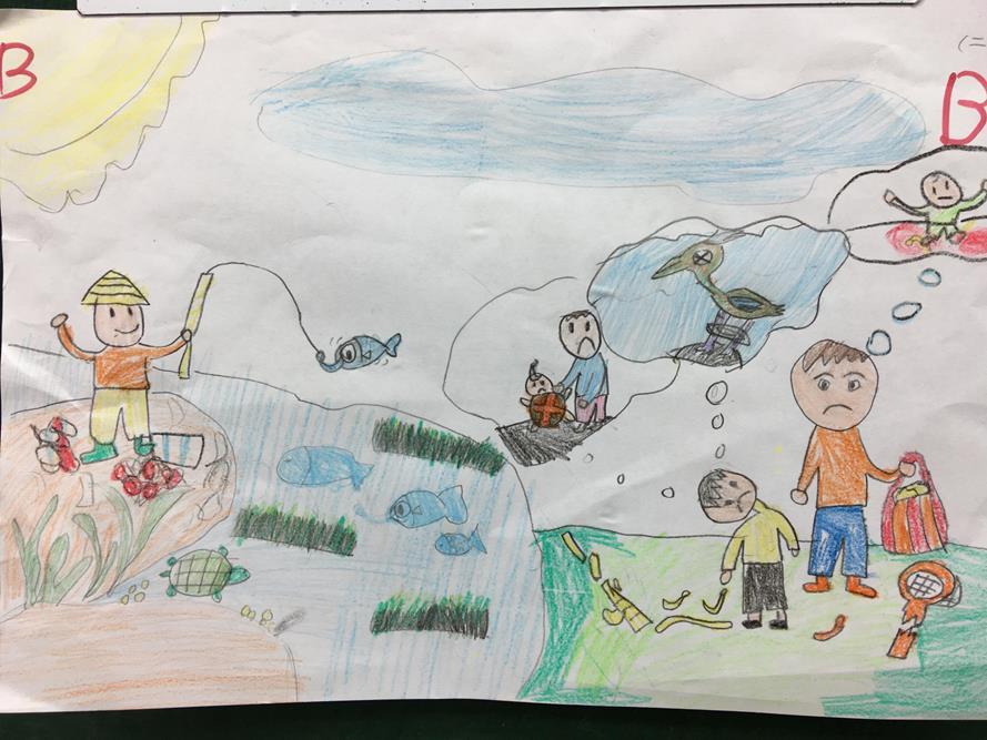 當我們在檢驗孩子所出的評論提問中,提到:你覺得小動物被人類丟棄的物品傷害,