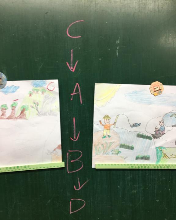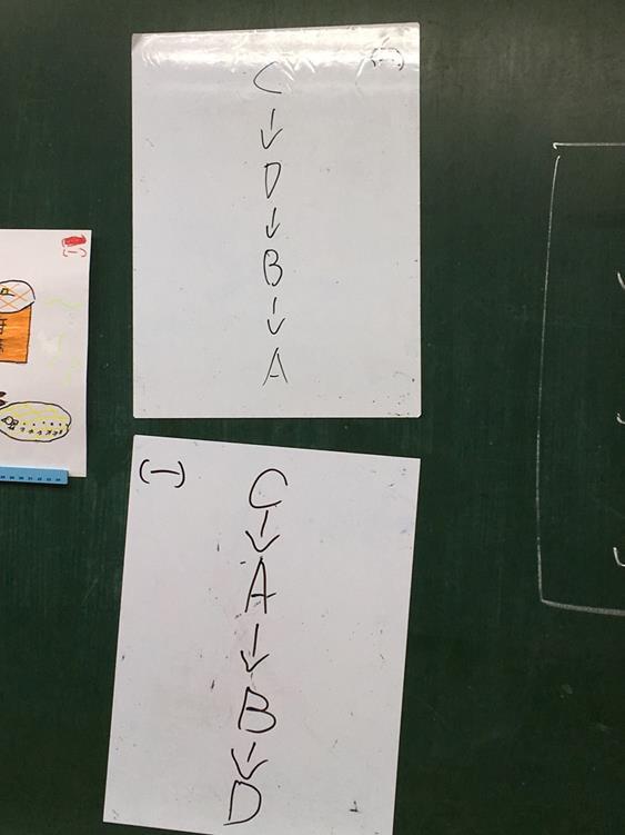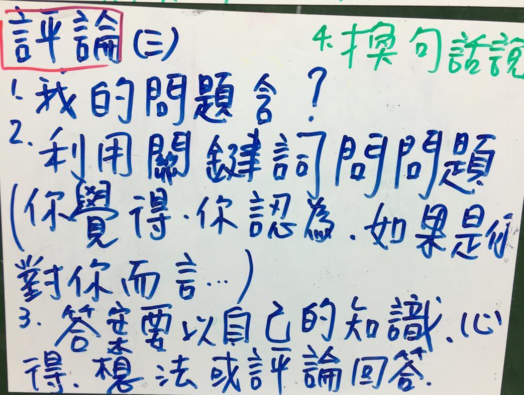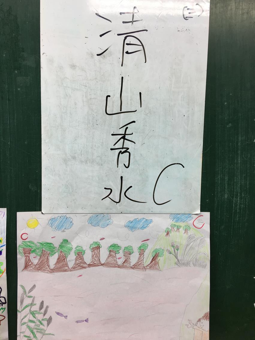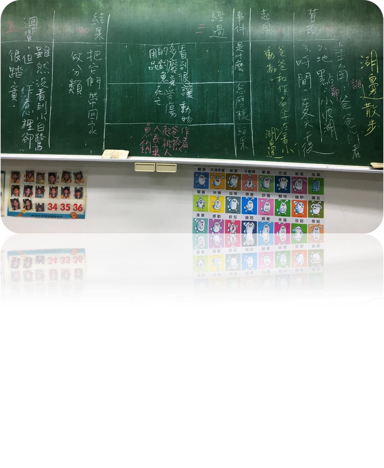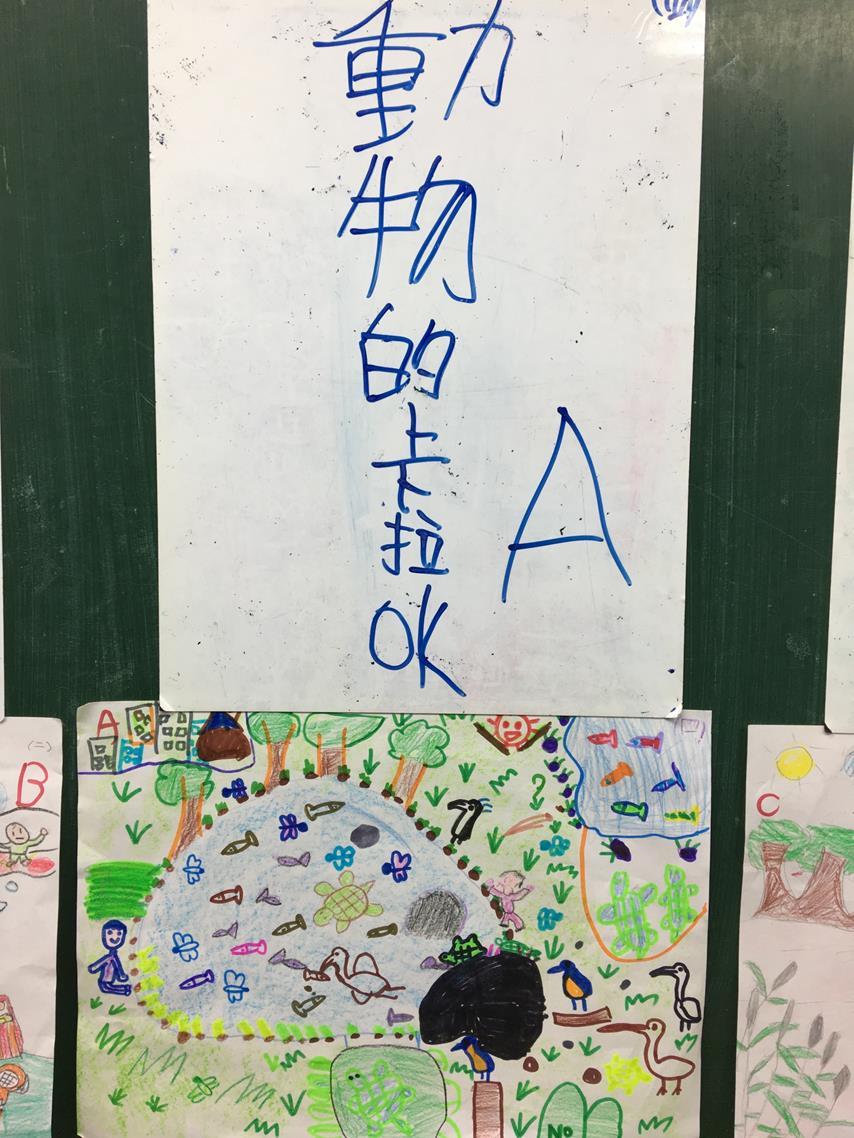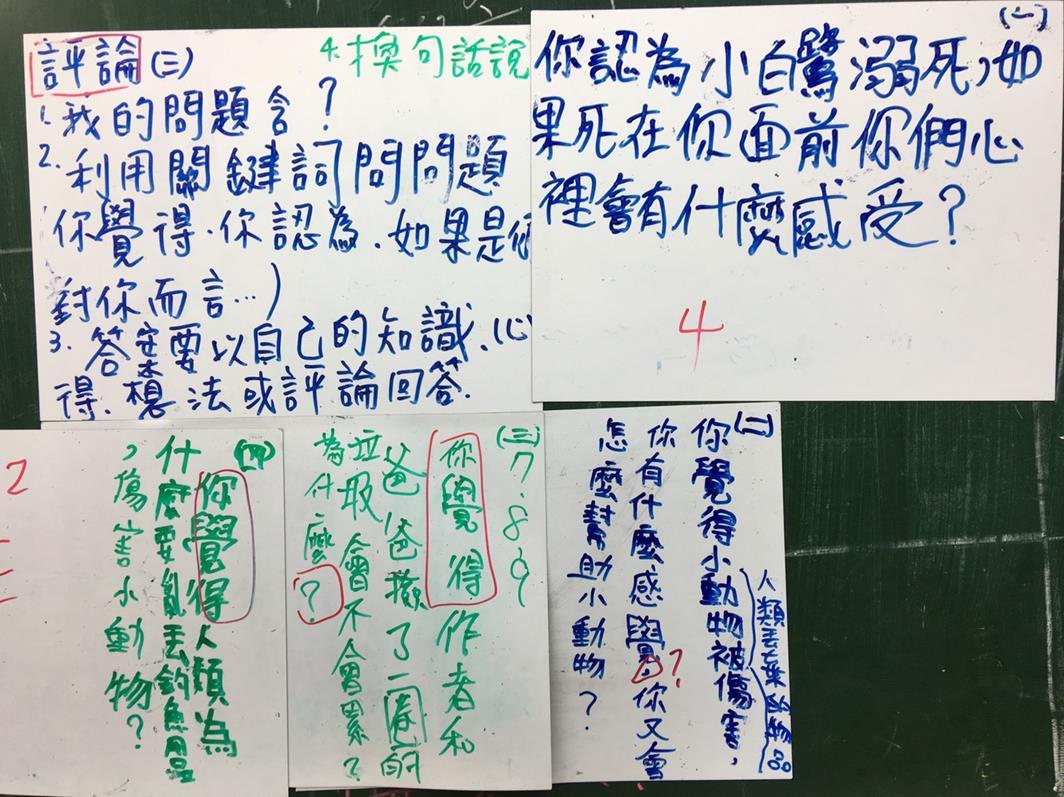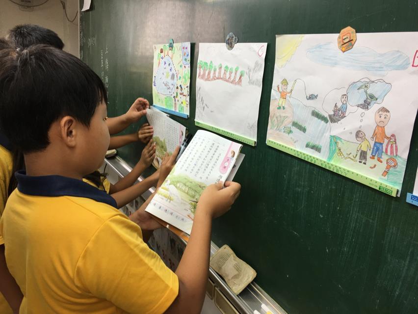 請各組孩子將成品貼在黑板上,我們一段段的檢驗及釐清楚語詞,