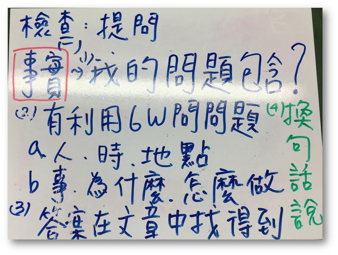 並且一再提醒提問要讓自己能夠幫助自己理解文本內容。