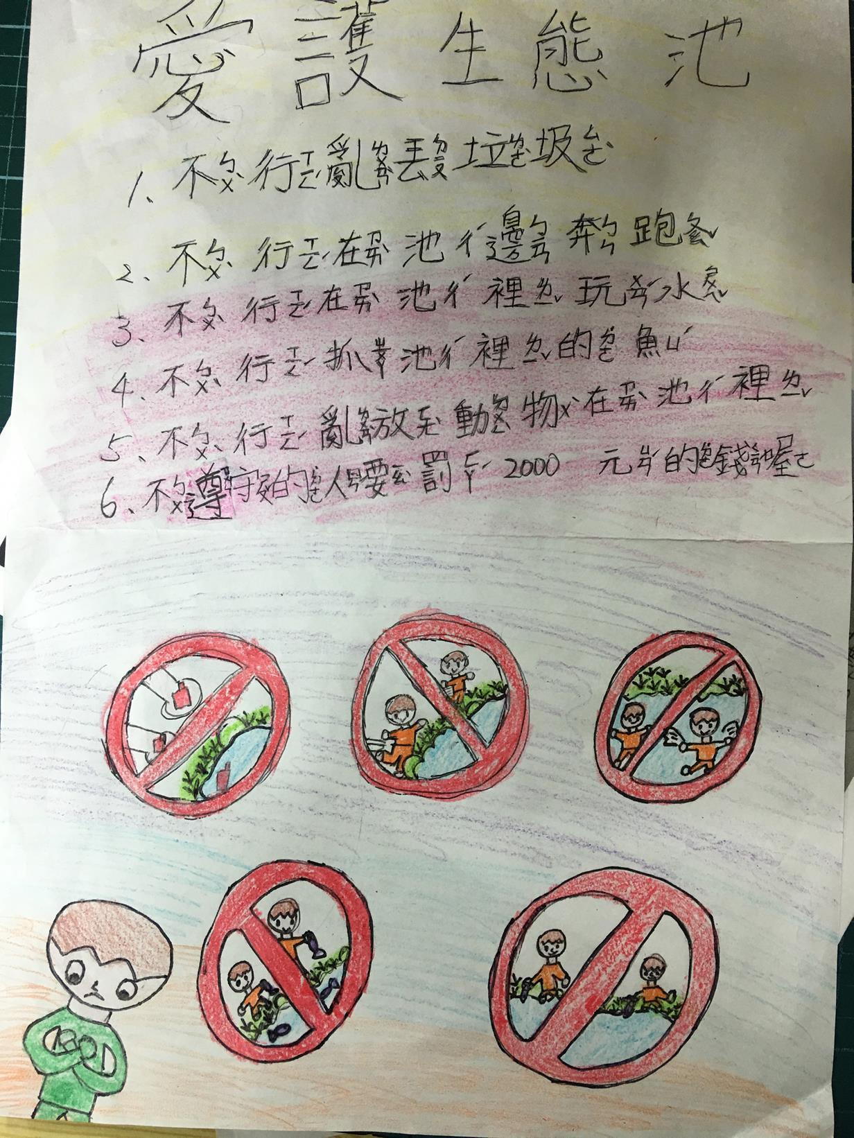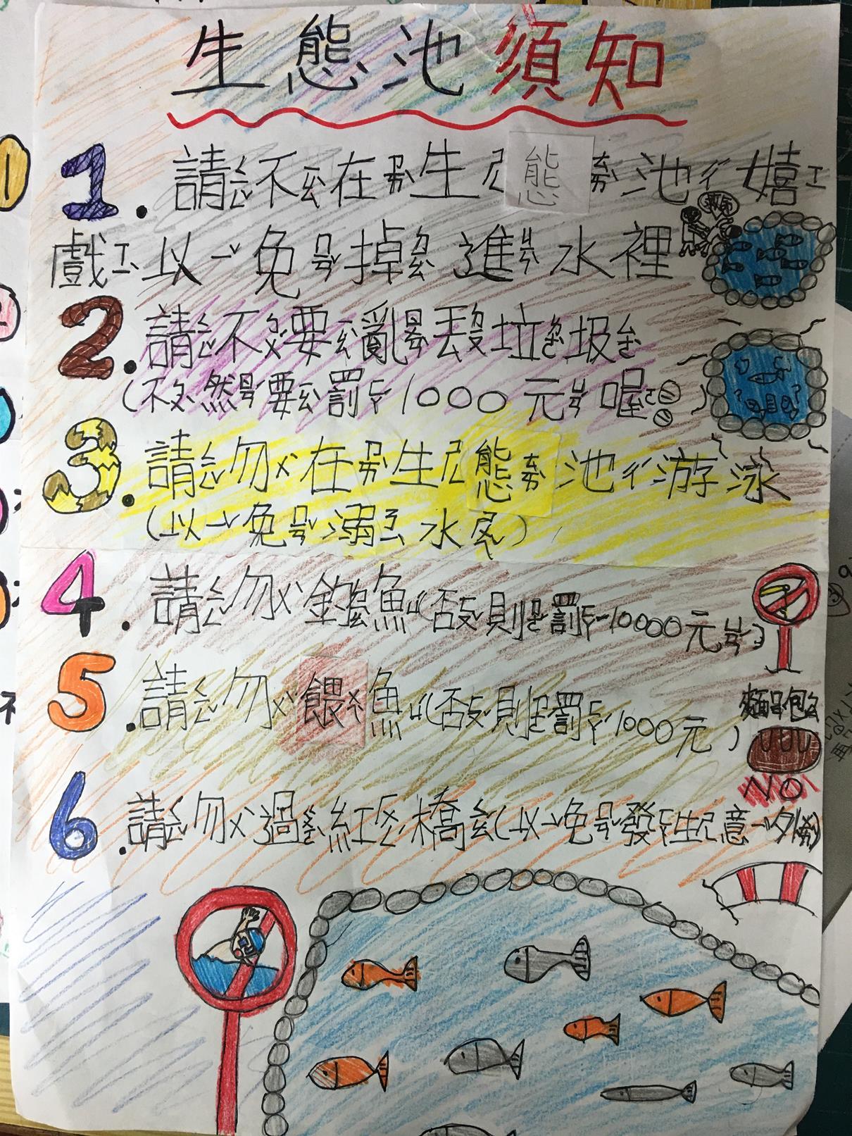 再找尋校園內危險的地方,又沒告示牌的地方~生態池,