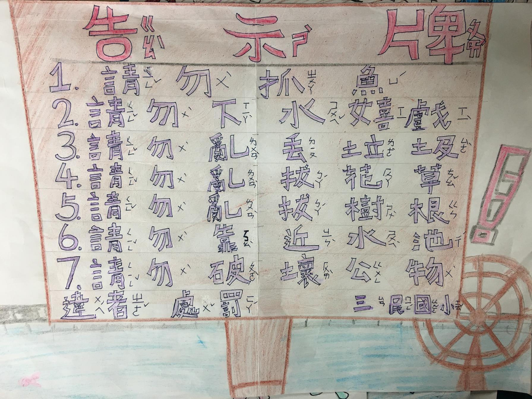 告示牌ㄟ~好點子於是讓孩子看看校內告示牌,並指導告示牌寫作方式,