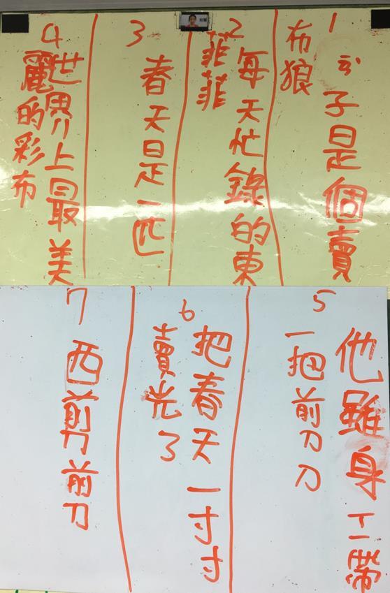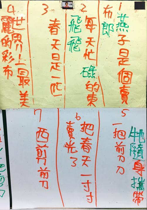 3. 公布答案,並請孩子在小白板上重新寫出排列正確的詩句,把所有原先不會的字都寫對。