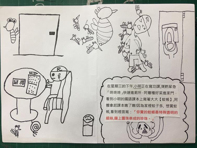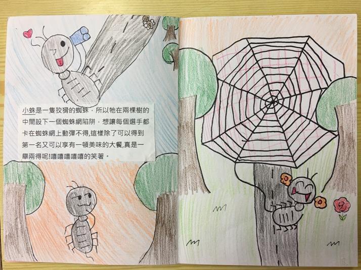 *從這個文本發現故事性極強,孩子又喜歡讀故事。於是建議孩子們在自創的故事中加入文本的詩句,引導孩子發現故事寫作需要有強度及高低起伏的感受。