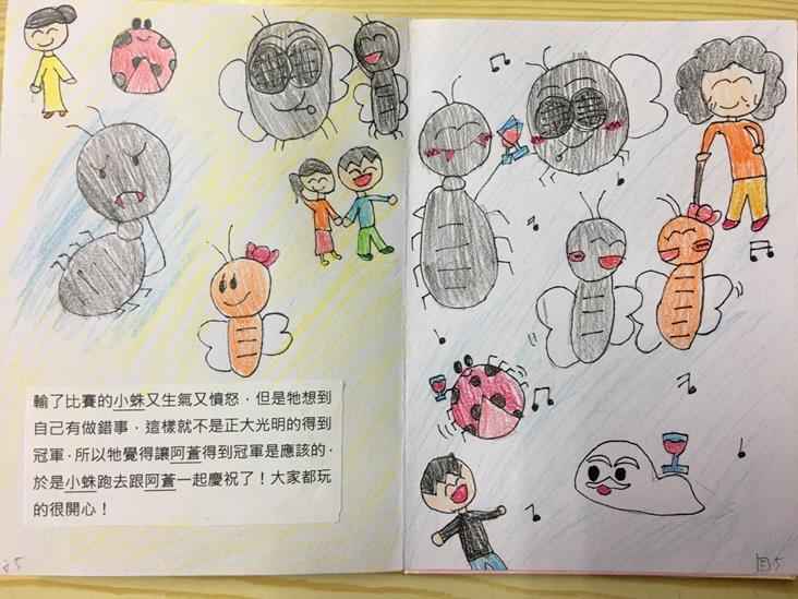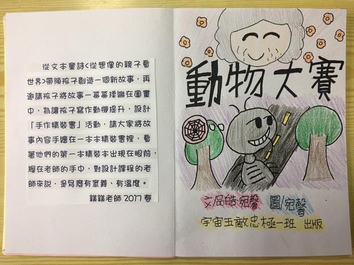 我同意好的作品要有耐心來等待,這本精裝繪本對於班上孩子來說不只寫作功力(看著童詩即可造出不同的故事內涵)增強不少,更令我感動的是耐心毅力也增強不少,因為精裝書,我們看了不下百本的繪本只為了比較觀察精裝書的特色,孩子最後懂得製作書要有蝴蝶頁、封面、封底、書背這些形式上的,內涵上呢!帶著孩子一步一腳印,從故事體寫的很無趣,到孩子將故事體寫的有趣且可以成就成一本精裝本,這份血淚史,我想也只有自己知道此箇中滋味,但是看著孩子們寫作能力的大躍進,對老師來說真的印驗了,不做不會怎麼樣,做了會很不一樣的概念。