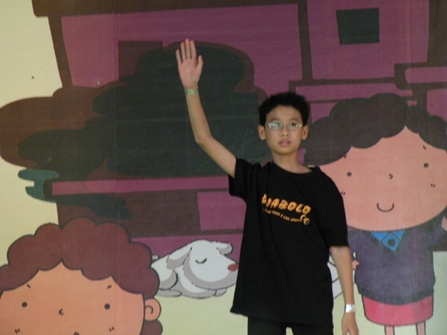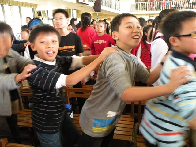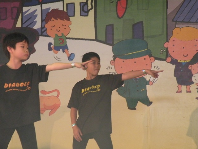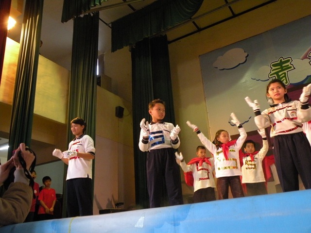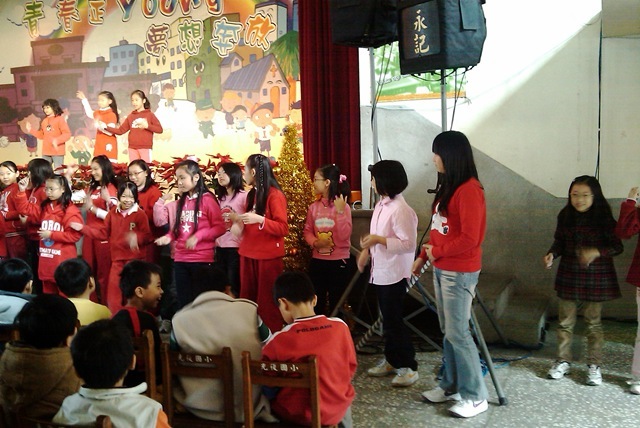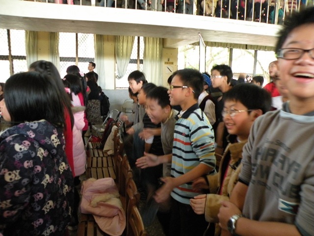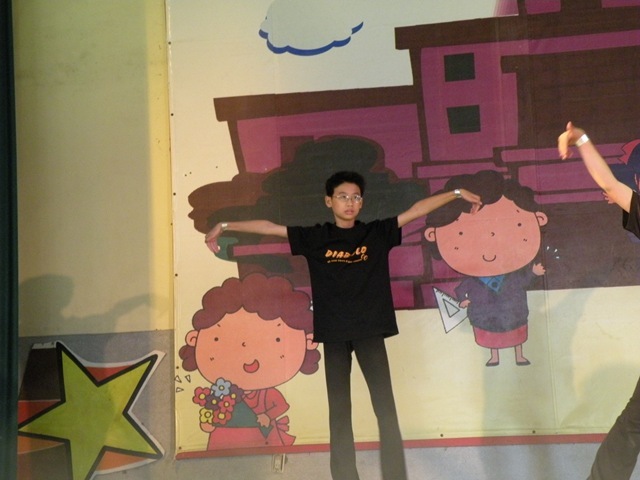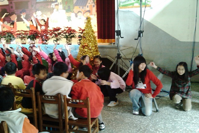 千呼萬喚始出來,歲末聯歡照片Post author:蔡欣翰Post published:2009-12-30Post category:班級寫真在看照片前,先說聲抱歉,因為大家實在太動感了,所以很多照片是很「動態模糊」的,但,仍然能顯示出大家的歡樂。在歲末聯歡中,老師發掘了幾位「動感天王、天后」,先預約下次的表演節目,別逃啊![@more@]第一個表演,由五年級的女生帶來的「Dancing Queen」,掌聲歡迎! 台上跳得認真,台下也跳得很邁力!大家都好棒哦! 麵麵,你在看哪裡! ↑兩位本班的小帥哥,等一下要粉墨登場哦! ↑(中間)小賢賢,就是你啦,你就是本班的最有潛力的跳舞新生!下次就看你啦! 相關內容拔河比賽練習2009-09-17國語日報朗讀2010-09-12運動會照片2011-04-25