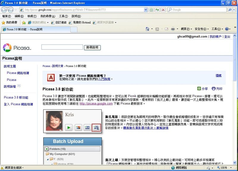 只好下載 Picasa 程式使用 (會裝的就往下跳過去)