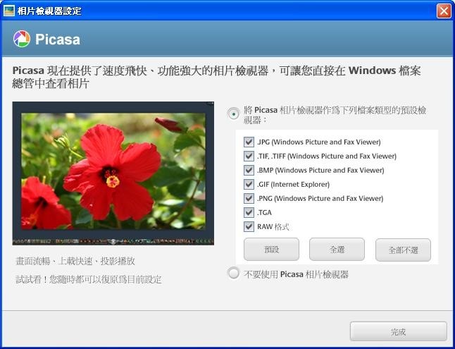 看要不要用 Picasa 當照片檢視器 (看個人習慣了)