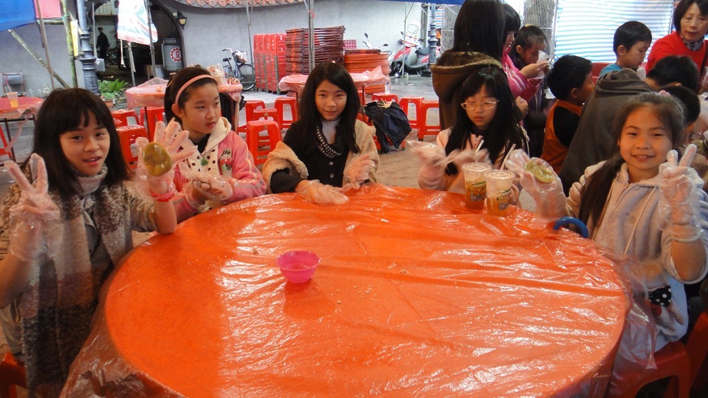 活動時愛心志工非常認真地指導學生製作,學生也很快的完成,並趁新鮮趕快將之吃下肚囉!