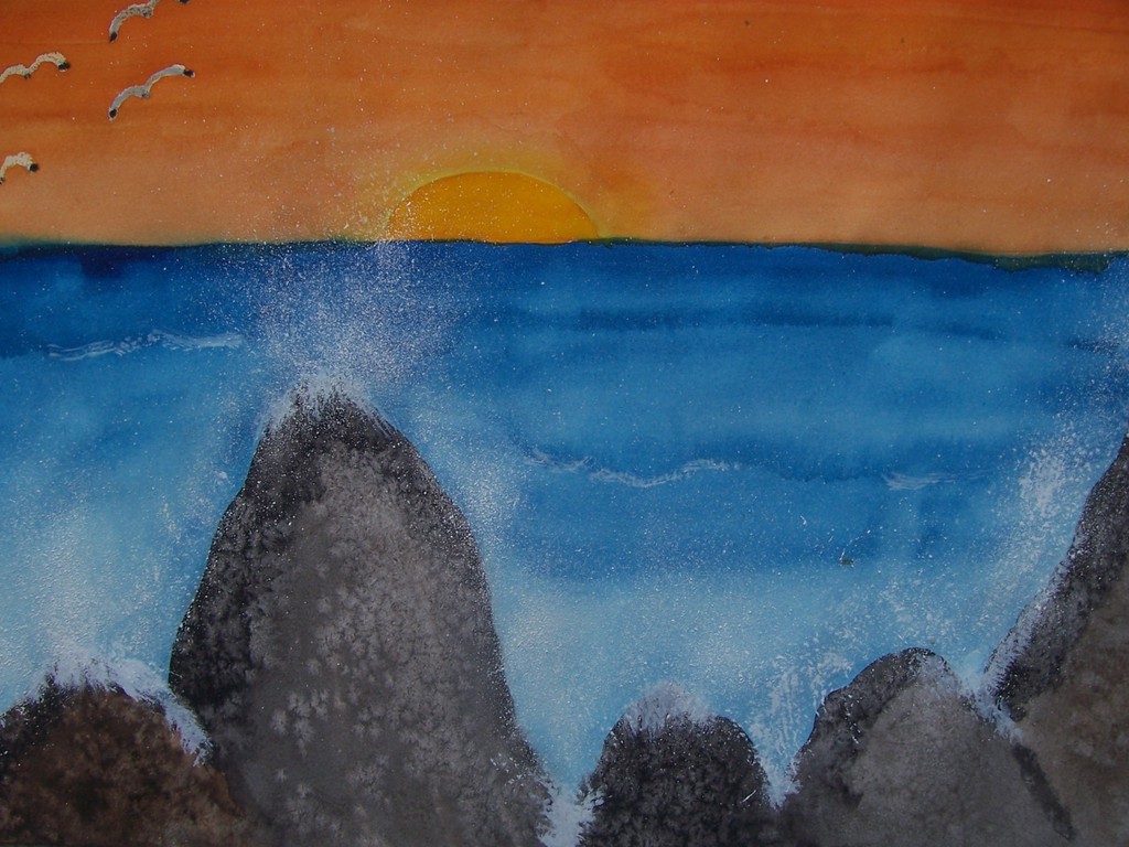 利用甩筆的技巧(舊牙刷也可以哦),製造出海浪拍打岩石激起的浪花效果。 利用食鹽吸水與漸溶的特性,模仿岩石斑駁的效果。 發揮創意,激發對色彩的敏感度與大膽的繪畫技巧。 結合生活經驗,試著將以往在...