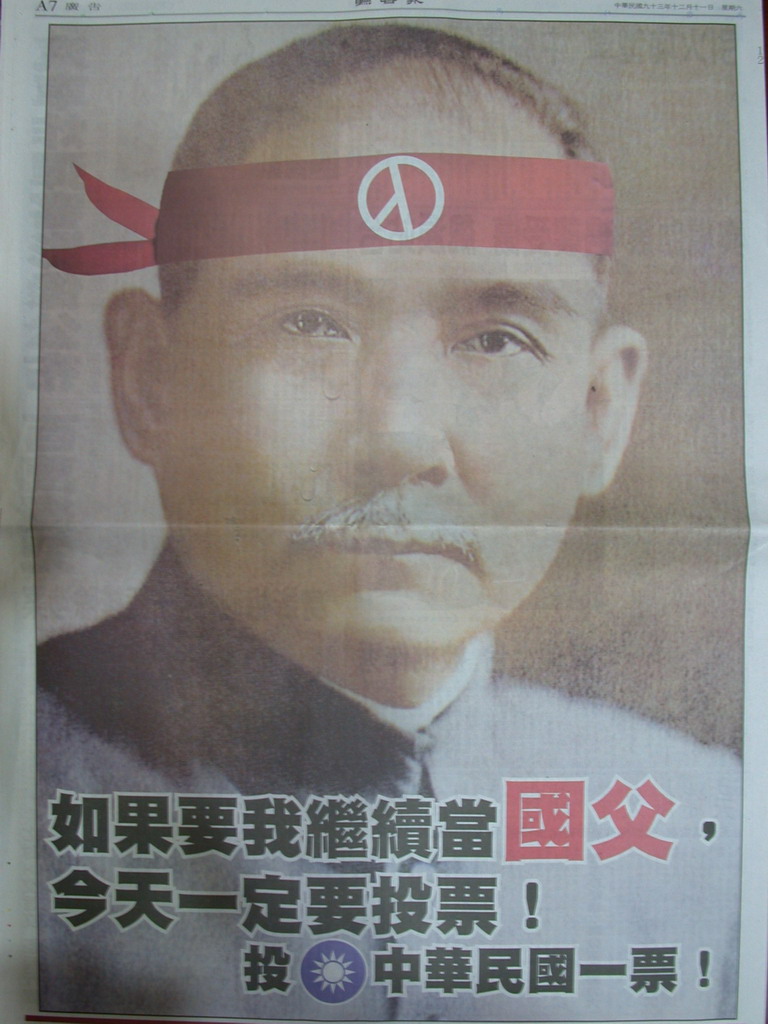 昨天那則「國父謝票」的雜文寫作時,我並不知道先前有這個平面廣告,因為選舉期間的紛紛擾擾,看新聞實在看得心驚與心煩,乾脆眼不見為淨,因此錯失觀看這個廣告的機會。這個「國父告急」和「國父謝票」的平面文宣應該算是兄弟檔,先有了告急,現在選舉獲勝,自然得對選民致謝。