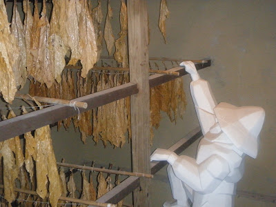 在我們國文課本中有課〈美濃的農夫琴師〉,那是大家認識美濃與客家的第一印象,為了教這課,不是客家人的我,實在頗感隔閡,現在,這些在美濃客家文物館中可以得到解決。文物館的精神是設計上係「採用傳統」而非「複製傳統」,亦即結合「菸樓造型」與「合院設計」,以「再建構」為出發點來設計。所以結合課本,菸樓的模擬實景可以在此一窺。▲美濃菸樓模擬實景