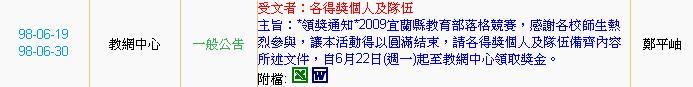 2009宜蘭縣教育部落格競賽教師個人組得獎公告截圖