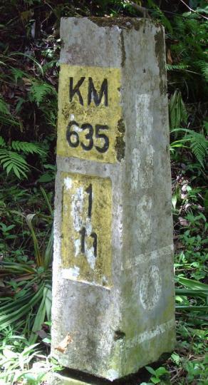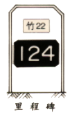 [8] 《道路交通標誌標線號誌設置規則》第116條:「里程碑『指44』,用以指示公路之里程及其路線編號,設於一般公路,以公路起點為零公里,順路線行進方向每隔一公里在路旁右側設置一塊,碑面下排所標之數字,為該點距離起點之公里數。里程碑碑面與行車方向垂直,里程數字正背兩面相同,設置地點應力求明顯,不妨礙交通。里程碑上排圖案指示路線標號,為白底黑字,下排數字指示公里數為黑底白字。」