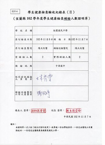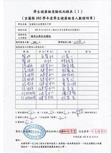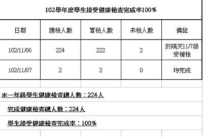 ※ 102學年度一年級學生接受健康檢查的完成率:100%