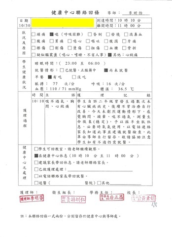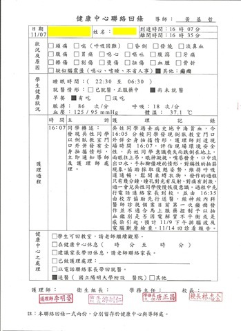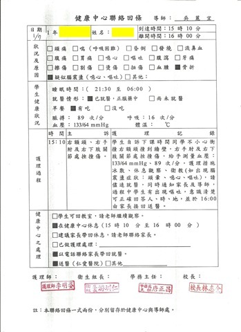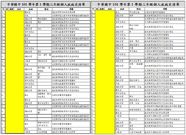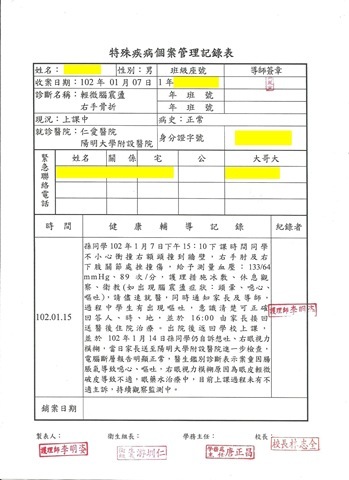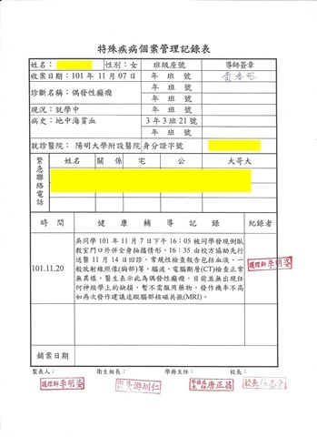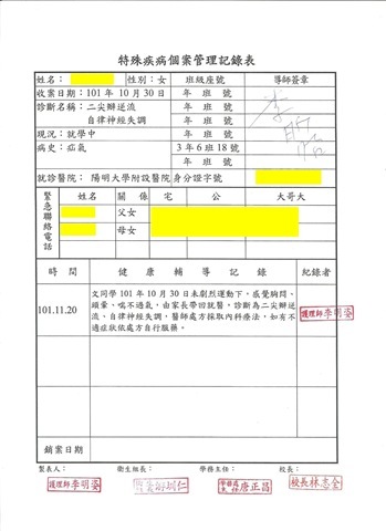 中華國中101學年第1學期特殊疾病個案管理記錄