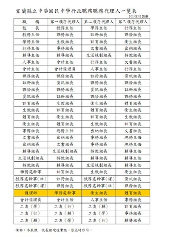 宜蘭縣立中華國民中學護理人員差假期間職務代理人制度