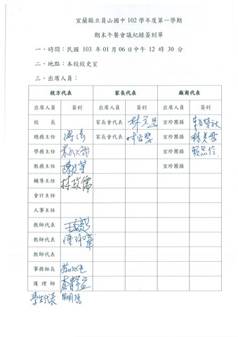 102學年度校務行政會議審議通過『102學年度健康促進學校計劃提案』