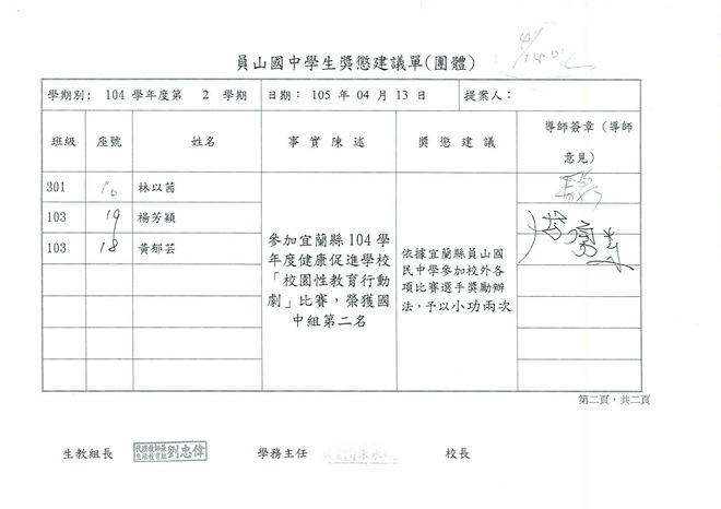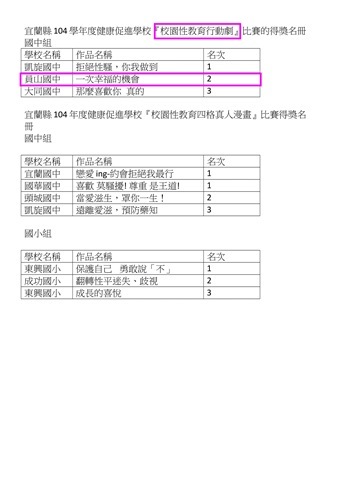 校園性性教育行動劇得獎1 104學年度校園性教育行動劇比賽 3-1-2性教育獎勵_1 3-1-2性教育獎勵_2
