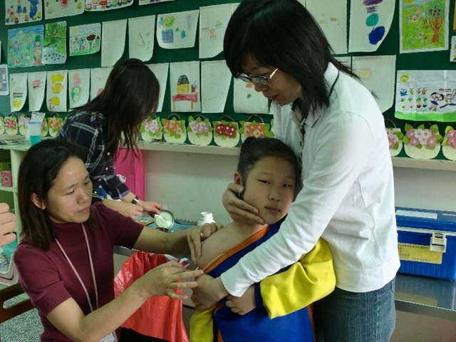 一年級日本腦炎預防接種作者:julywu2011 年 5 月 18 日2021 年 3 月 18 日活動內容:由礁溪鄉衛生所護理人員到校為一年級學生進行日本腦炎預防接種時間:100年4月26日地點:一年級教室