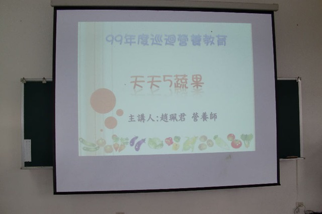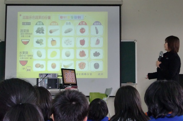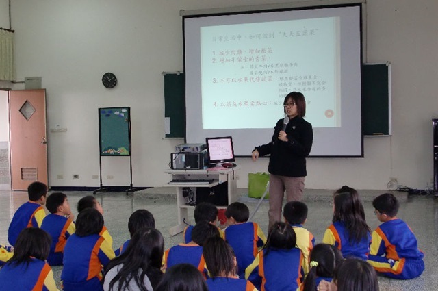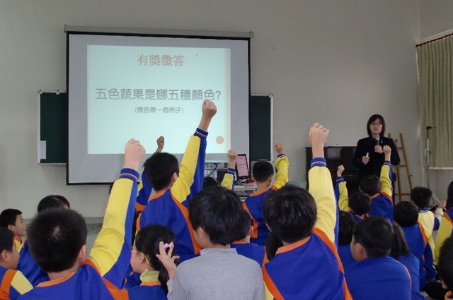中年級營養教育作者:julywu2011 年 5 月 18 日2021 年 3 月 18 日991126營養教育 宣導年段:中年段 講座主題:天天五蔬果 講座教師:趙珮君營養師 參與人數:45人 活動成效:經由講座宣導及有獎徵答,能有效協助學童建立正確食用蔬果之觀念與習 性。