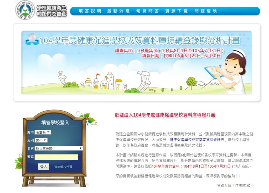 ▲每學年進行健康促進議題調查前後測,並將成效統計數值登錄教育部資料庫。