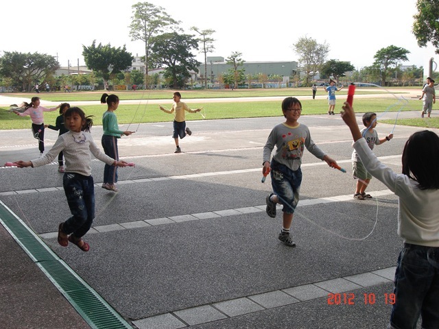 101學年度課間活動–跳繩推廣2412 月 201218 3 月 2021活動目標:1.培養學童良好體能,增進運動持續力,促進身心均衡發展。2.提升學童平均身高值。實施期程:101/08/30-102/01/18活動花絮: 跳繩集點卡:公開表揚及抽獎: