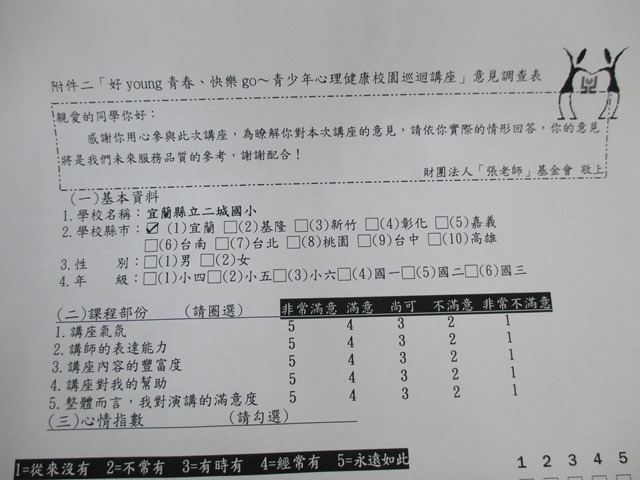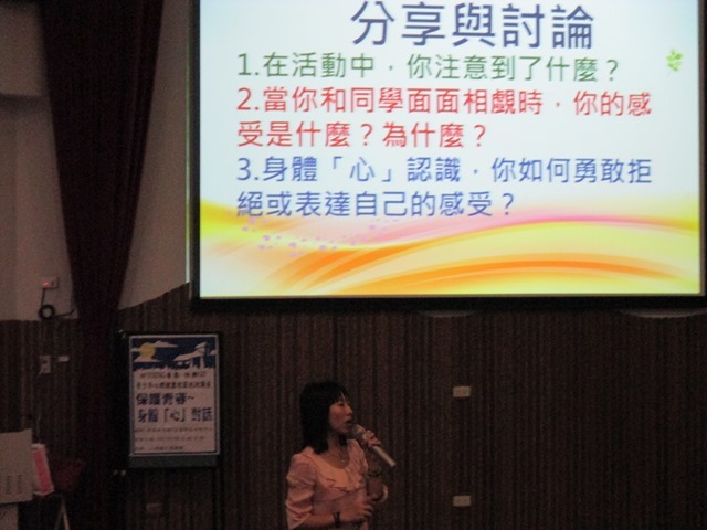 1030926保護青春-身體<心>對話269 月 201418 3 月 2021一、日期:1030926二、地點:二城國小視聽館三、對象:五六年級學生四、講師:張老師五、內容:(一)介紹兩性青春期第二性徵 (二)體驗活動-面面相覷<藉由兩人面對面互看,來感覺自己的感受> (三)分享與討論&有獎徵答 (四)回饋