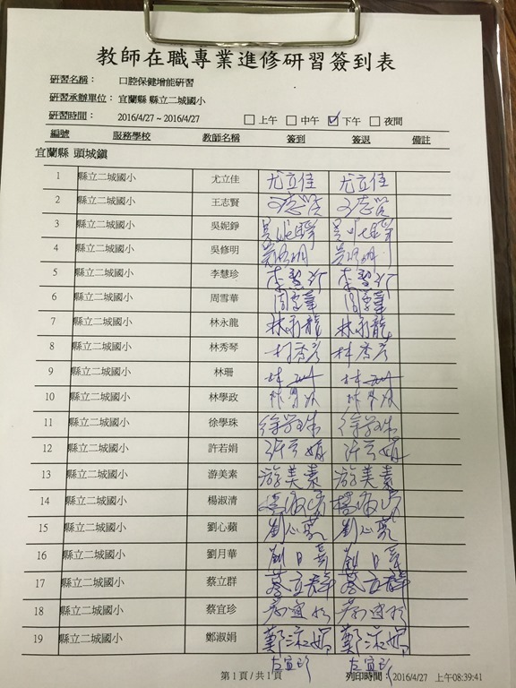 教師增能研習(口腔保健/反毒知能)274 月 201618 3 月 2021 時間:4月27日 13:00–16:00地點:新北棟一樓會議室講師:李靜惠 護理師主題一: 口腔保健–認識牙周病及牙線操作使用 主題二:反毒知能宣導講師:陳麗秋 藥師/頭城鎮衛生所