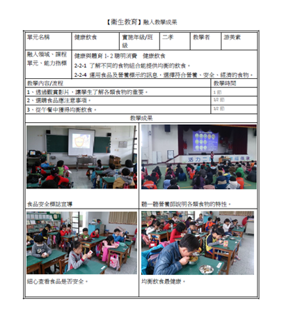 二年級【衛生教育】議題融入教學成果