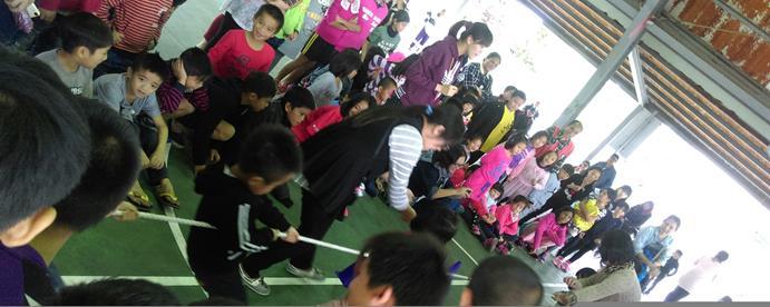 1.全校學生分四組分別進行趣味競賽,三項趣味競賽。