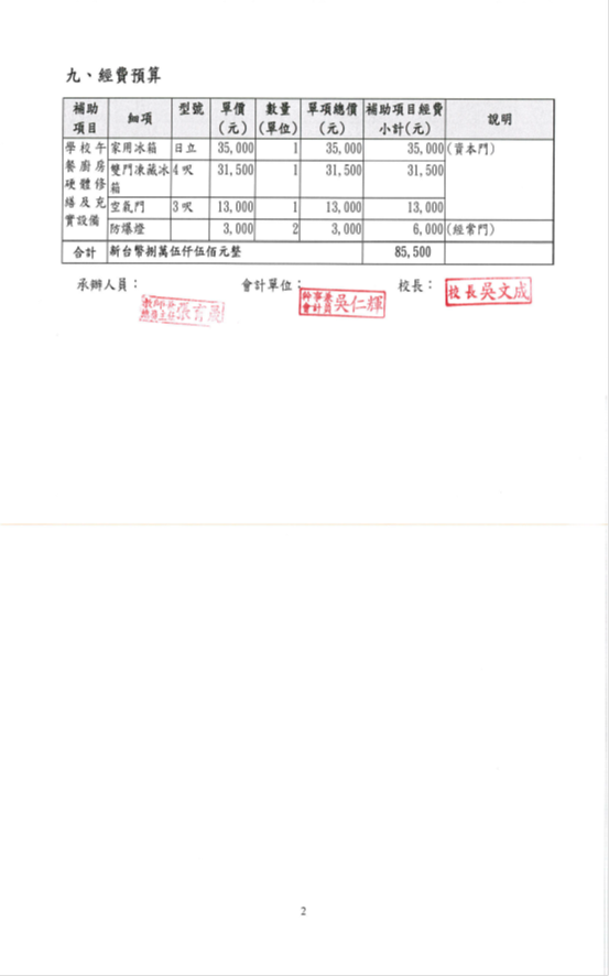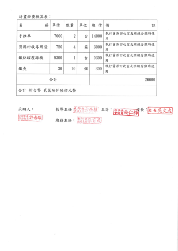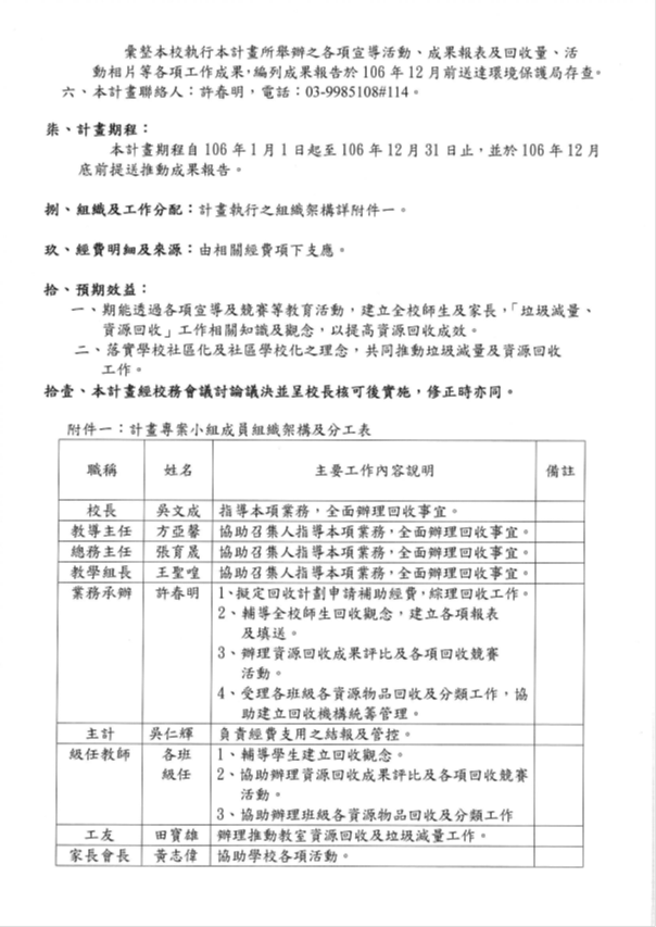承辦人: 許春明 教導主任: 方亞馨 校長:吳文成