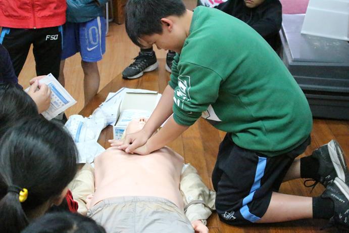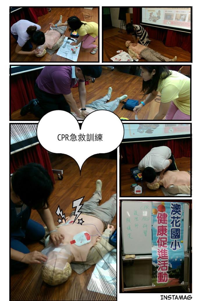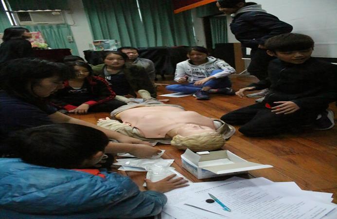 實際操作訓練使教職員工及學生強化其健康生活技能:CPR+AED。