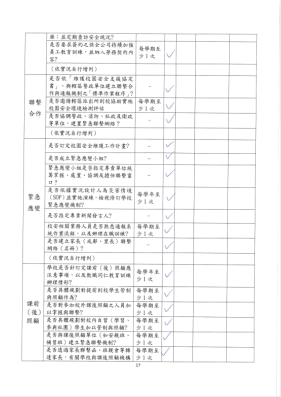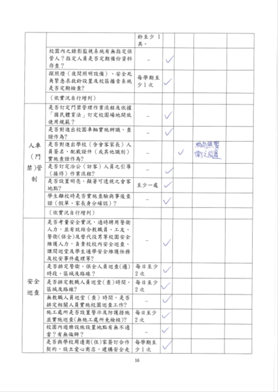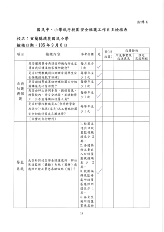 1.初級檢視: 學校透過總務處及學務組定期巡查校內樹木健康狀況,如發現有病從害狀紀錄包括發生地點、發現時間、受害樹木資訊、受害症狀描述紀錄。