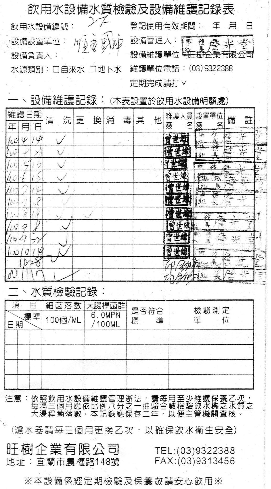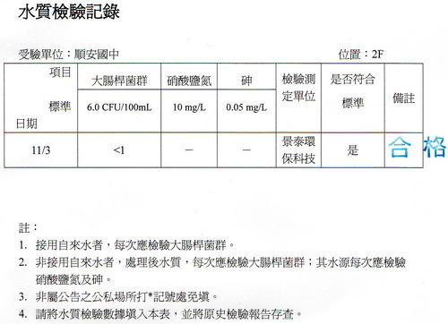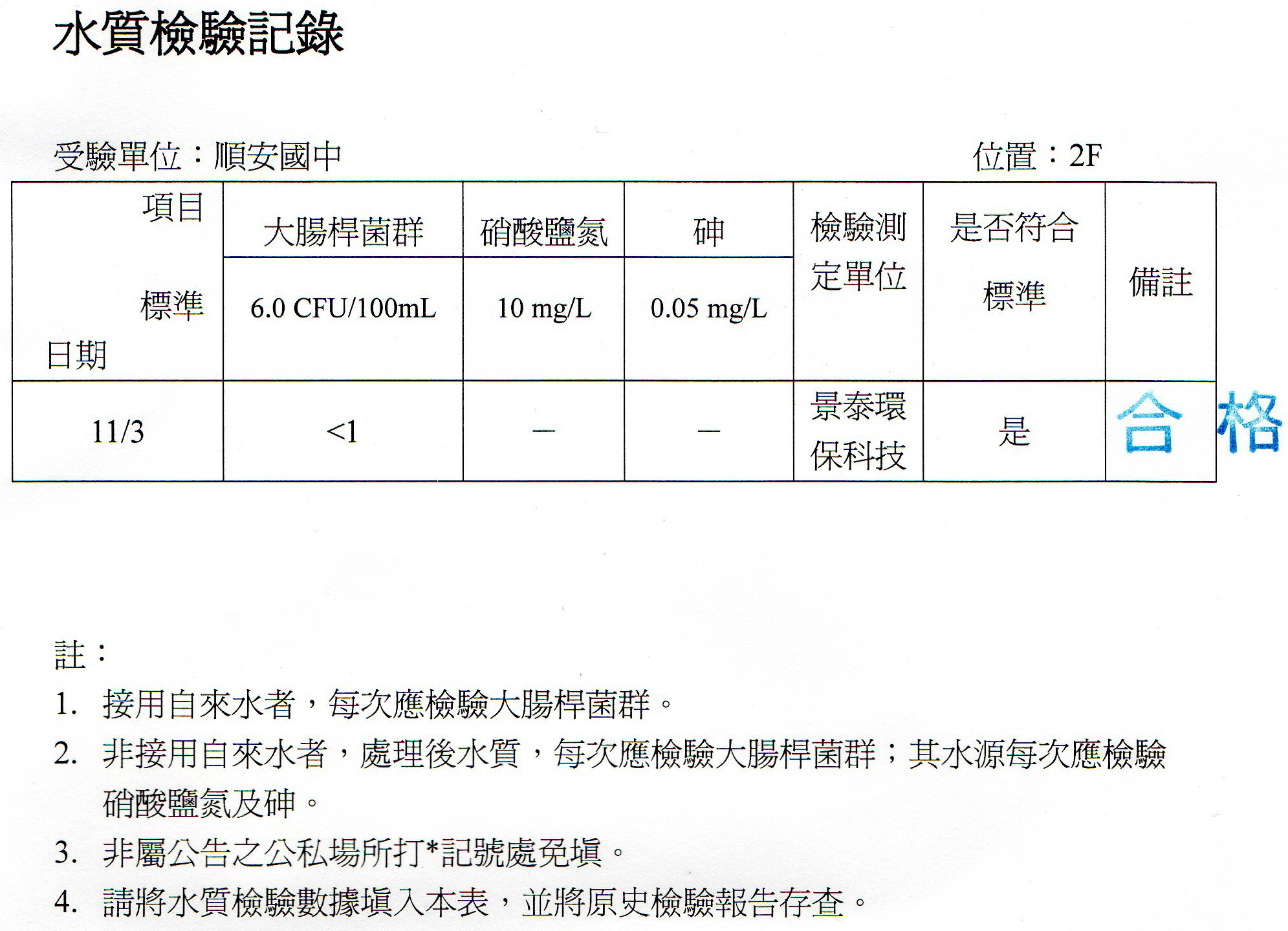 實施水質檢測並公佈結果Post author:jingPost published:2011 年 12 月 1 日Post category:行政與管理 相關內容登錄綠色學校伙伴並提報2013 年 9 月 18 日一-2.2、提報107年度環教執行成果2019 年 11 月 1 日107_1-3-2、107年度節能減碳計畫2018 年 11 月 1 日