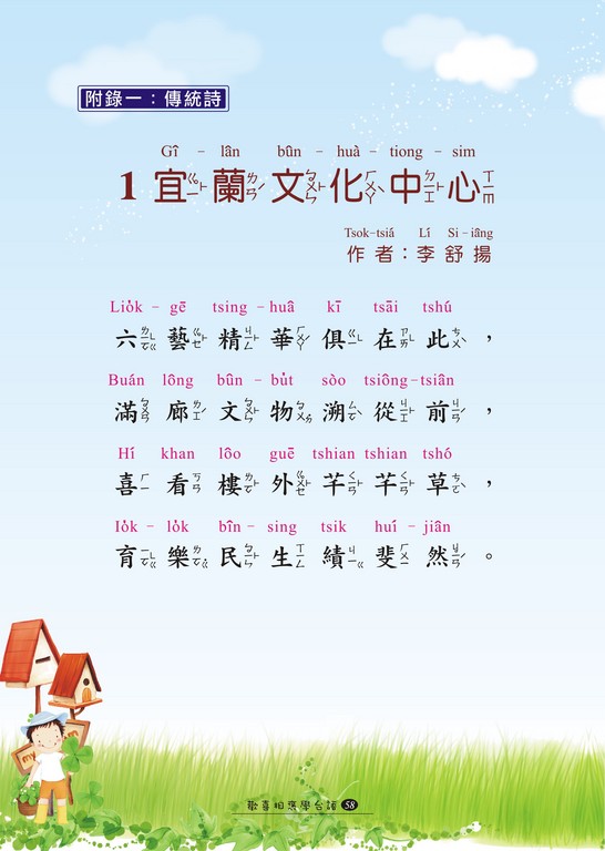 人講酒逢知己飲,若好詩句會友吟,眾人學習真有心,臺語園地歌詩吟。