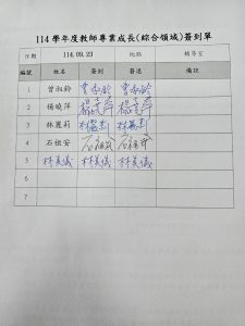 6.落實領域教學研究會,並積極參與或辦理教師專業成長研習。 | ||||||