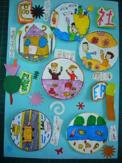 1.教師請學童發表上、下學時所看到的社區景象,並繪出社區的景象,且鼓勵學童在日常生活中細心觀察周遭的生活景觀,關懷周遭環境。