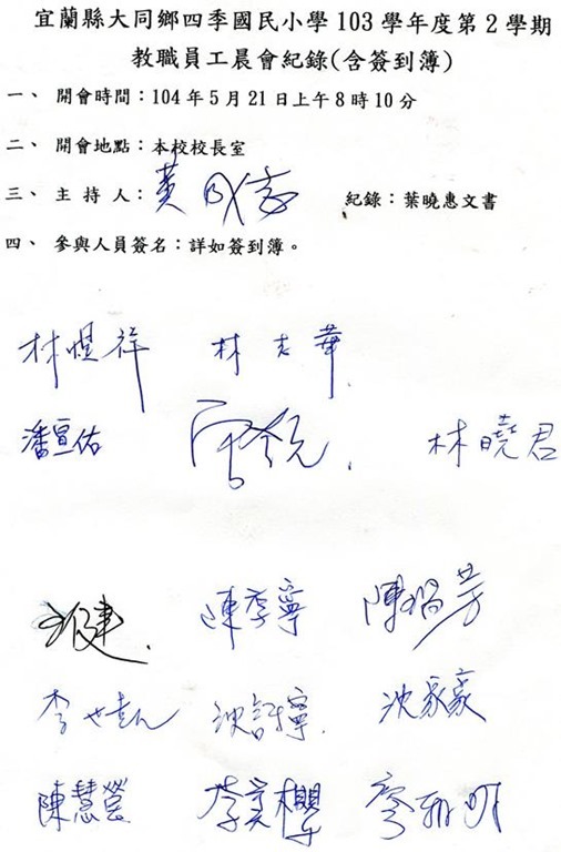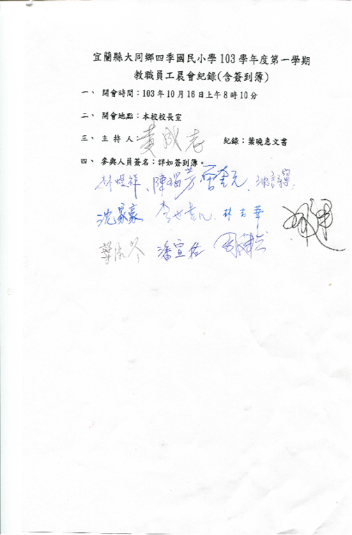 四季國小103學年度第一學期環境教育推動小組會議成果照片