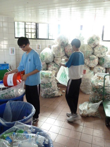 情況:各班先把資源回收物徹底分類與清潔避免惡臭出現,集中處理分類每個月初再請資源回收商進行大宗資源回收