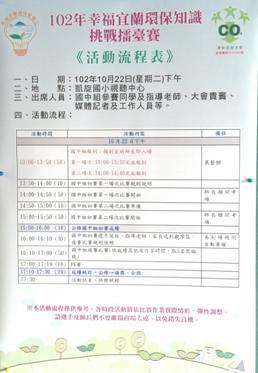 102宜蘭縣環保智慧王競賽-凱旋國中2013 年 11 月 5 日2021 年 3 月 18 日 作者: 林兆駿 分類: 其他配合措施102宜蘭縣環保智慧王競賽-凱旋國中恭喜王奕翔ヽ黃霖鍇同學獲得入選獎