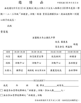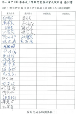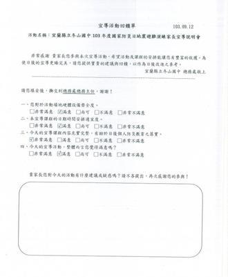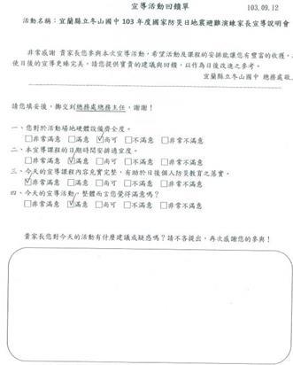 活動名稱: 冬山國中103學年度上學期國家防災日防災演練家長說明會