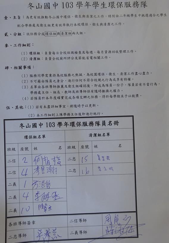 宜蘭縣立冬山國中102學年度『垃圾分類暨資源回收』競賽實施計畫